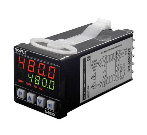 - Saídas de controle: Um relé SPST e um pulso de tensão, disponíveis no modelo RP, dois relés e um pulso de tensão no modelo RPR, três relés no modelo RRR, dois relés e uma saída 4-20 mA no modelo RAR.