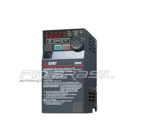 | Características | Tensão: 220/240 VCA Corrente nominal: 5,0A Potência ativa nominal (kW): 750W / 0,75kW Grau de proteção: IP20 Dupla Capacidade de Operação: Obtenha desempenho superior em tamanhos de equipamento menores com classificações de corrente de sobrecarga de serviço leve (LD) e serviço normal (ND) Auto Ajuste para Motores Assíncronos e Síncronos: Configure e comissione de forma rápida e fácil, sem precisar de ajustes demorados ou da necessidade de suporte no local; Modelos com Protocolo Ethernet com porta dupla e RS-485; CLP MELSEC com 2000 passos de programação: Reduza os componentes internos e economize espaço no painel, eliminando o tempo de fiação e reduzindo o tempo de configuração do sistema. A operação do sistema pode ser personalizada pelo recurso de CLP integrado do FR-E800. Função de Diagnóstico de Vida Útil: Analise e determine a vida útil dos componentes críticos e essenciais, como capacitores, relés de contato, ventilador de refrigeração e resistor de Pré Carga. |