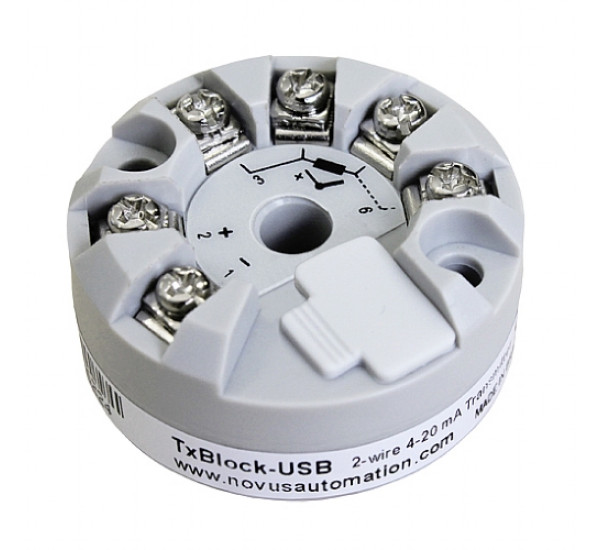 | Características | Poderoso e de alta precisão, o TxBlock-USB é um transmissor de temperatura, alimentado pelo laço, para montagem em cabeçote, aceitando vários tipos de sensores - termopares, Pt100, Pt1000, NTC e 0-50 mV - em um único modelo, com saída linearizada de 4-20 mA e faixa de medição configurável. O produto permite ajuste em campo em 2 pontos na curva de calibração. Dispositivo de classe mundial, o TxBlock-USB é compatível com os principais padrões de compatibilidade eletromagnética, sendo um dispositivo altamente imune e confiável para o ambiente industrial. |